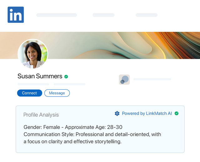 Instantly and effortlessly view all the necessary insights about a LinkedIn profile with LinkMatch AI. LinkMatch AI will automatically analyze profiles based on your custom prompt and provide you with all the required details.