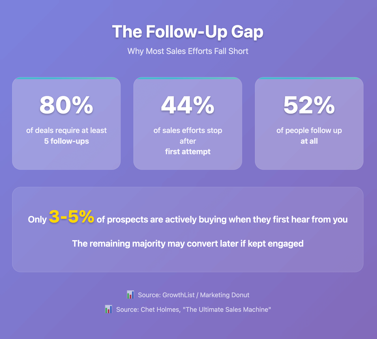 A lot of deals don't close on the first conversation. The reason isn't disinterest; it's timing, budget, or internal delays. Yet many opportunities are lost because the follow-up is inconsistent or forgotten.